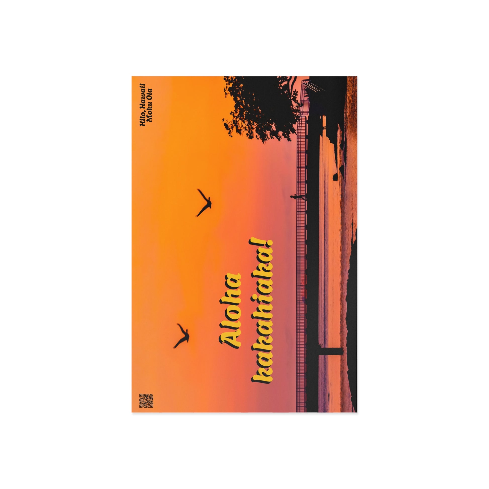 Capture the serene beauty of sunrise and the vibrant colors of nae nae birds with these fine art postcards featuring a jogger in silhouette on the bridge to Moku Ola (Coconut Island). Perfect for sending a touch of nature and tranquility to friends and family, or for keeping as a keepsake in your own collection. Ideal for nature lovers, joggers, and art enthusiasts. Relevant for birthdays, holidays, or simply to send a thoughtful message.